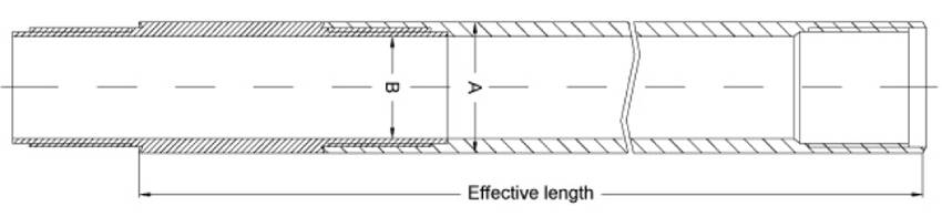 These are flush jointed with integral male thread at one end and box thread at the other end Metric casing tubes are light weight because of thin wall and have a wider size range to suit all applications.